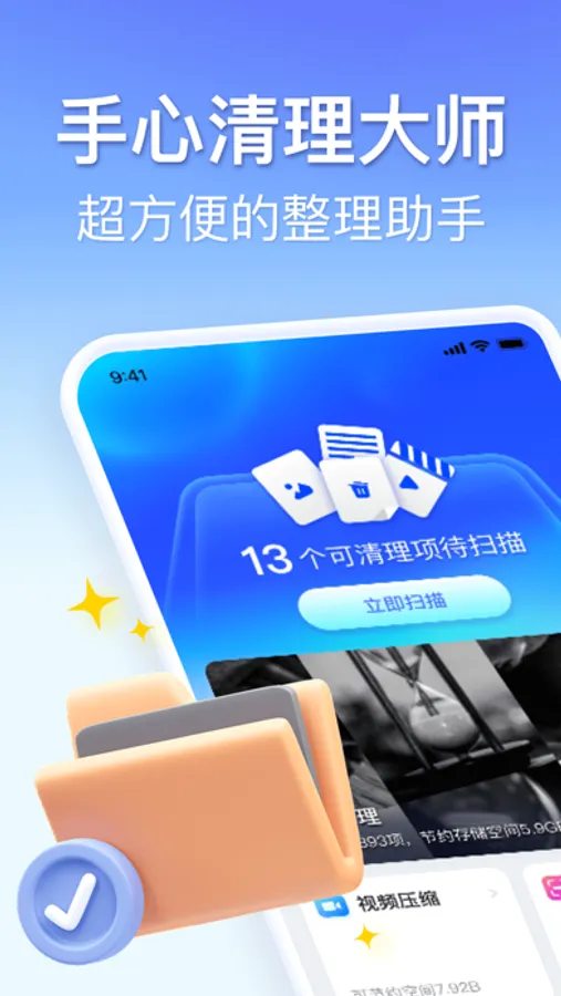 手心清理大师免费试用版,为您提供全部功能体验。您可以快速清理手机,整理照片,保护隐私,掌握手机状态,畅享更清爽的移动生活。快来下载手心清理大师,享受非凡的手机清理体验!