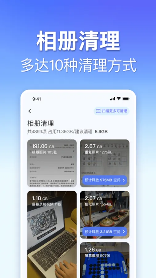 —智能扫描,最新模型自动分类,安全存储私密照片,给您的手机增加多重安全保障。