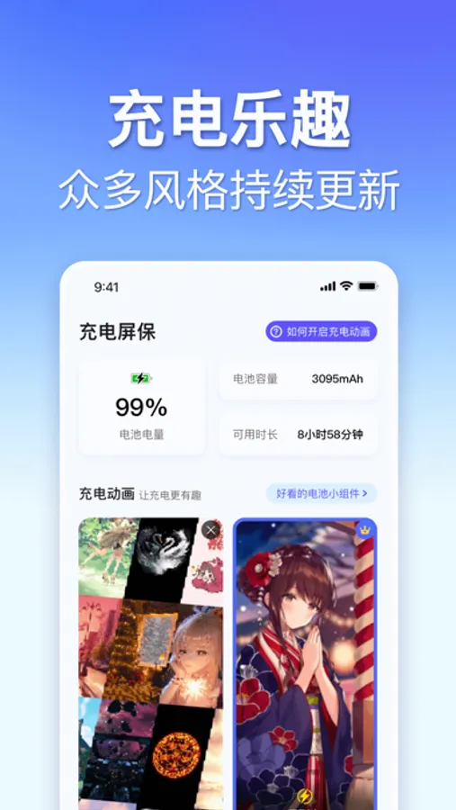 —手心清理大师还会提供电池及充电动画,让您实时掌握电池信息,让充电变得有趣电池也更健康。
