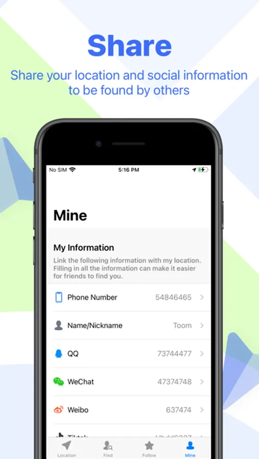 With our app, you no longer need to call each other dozens of times to arrange a meeting. You can simply view each other's locations via various popular social information. If all of your family members install our application, you will be able to know not only their current geolocation but also the places in which they have visited during the past days.