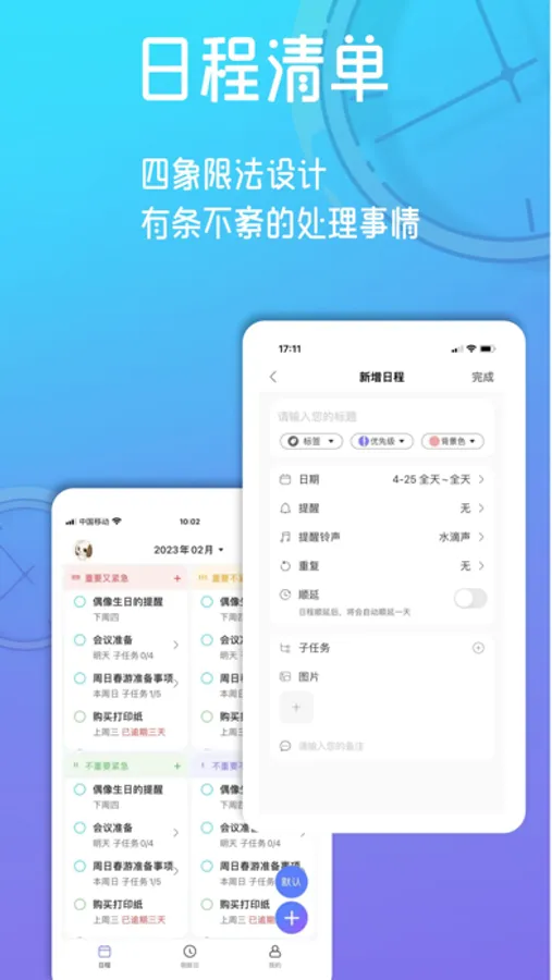 【日程清单】可快速建立日程清单,分类清晰,并设置提醒