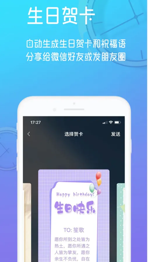 【生日贺卡】可选择喜欢的图片,自动生成生日贺卡,分享给微信朋友圈的好友