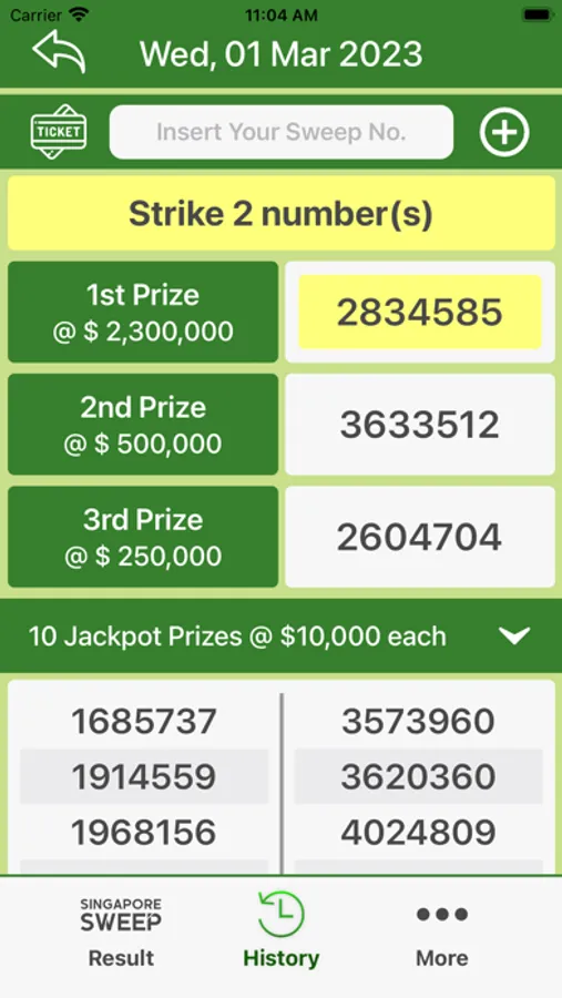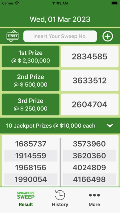 This app is developed and provided independent of the involvement of Singapore Pools. To the extent that the reporting of Singapore Sweep results may be inaccurate, please note that such inaccuracies are not the responsibility of and should not be attributed to Singapore Pools.