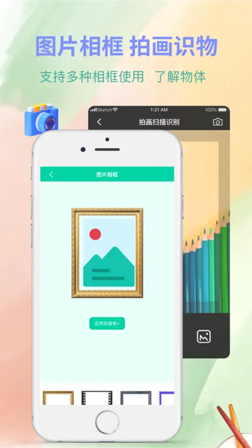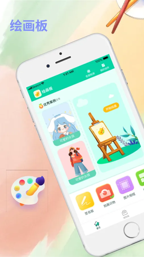 绘画板同时还支持签名版、拍照识图、图片画框、图片拼接及储物柜等功能,页面布局优美,使用简单方便。