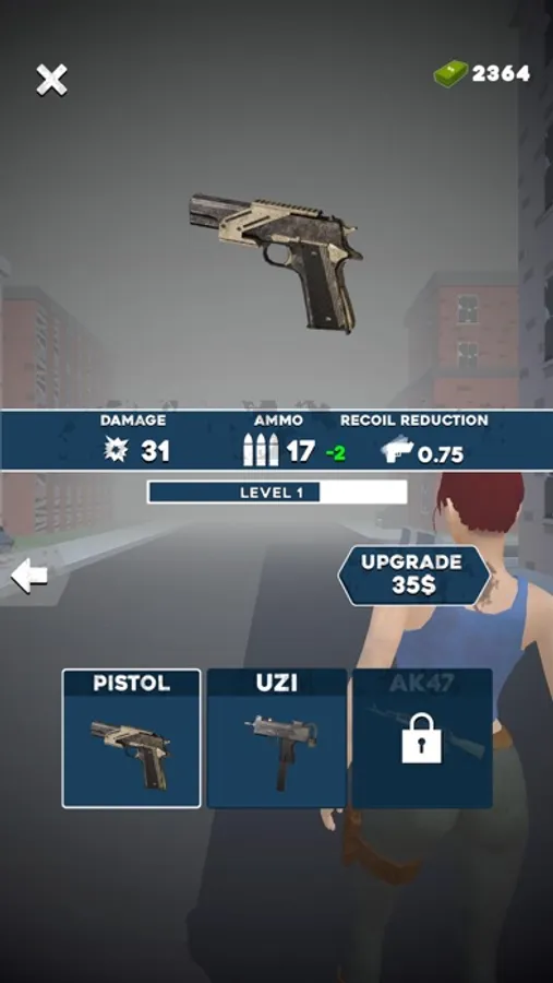 * Unlock and upgrade your weapon collection of pistols, AK-47 and UZI as you progress.