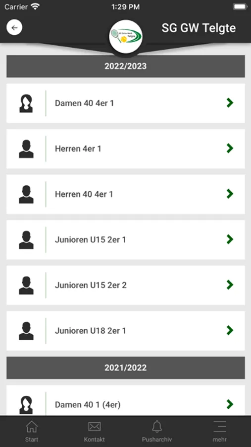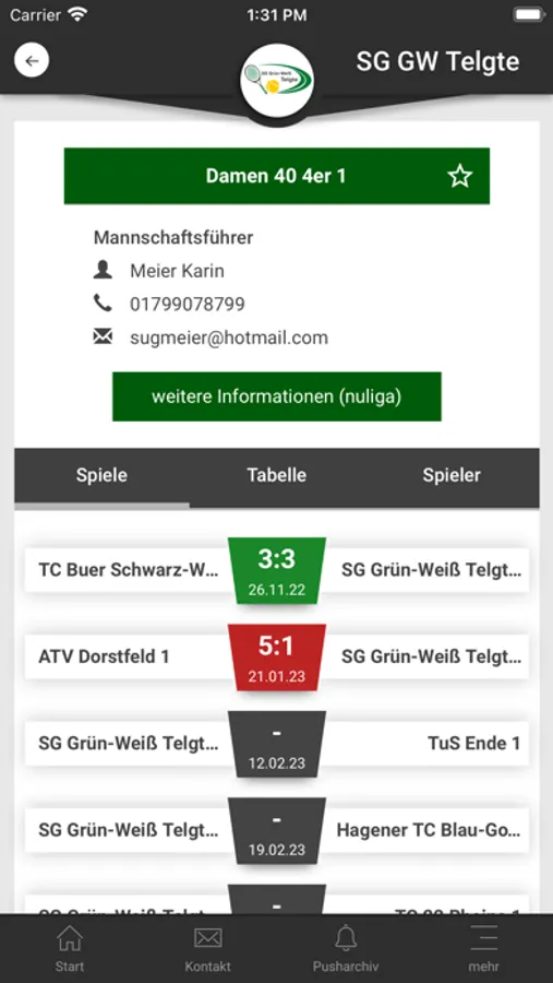 Alle Mannschaften inkl. der Spieler und den Ergebnissen der Meisterschaftsspiele