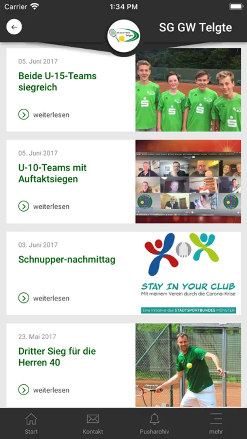 Push-Benachrichtigungen zu aktuellen Ereignissen im Verein