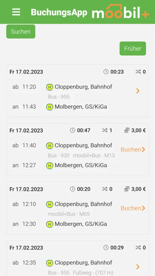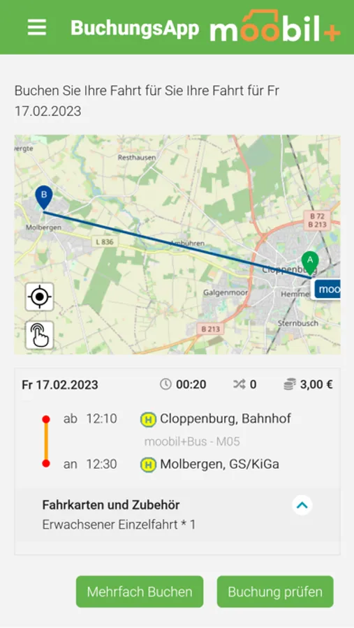 Wann fährt mein moobil+Bus? Was kostet eine Fahrt? Welche Anschlüsse habe ich? Alle Antworten auf diese Fragen und noch viel mehr finden Sie in der neuen kostenlosen moobil+App. Unsere neue moobil+App ermöglicht ebenso die Buchung von Fahrtwünschen und die Verwaltung des eigenen Profils. Auch Guthaben kann direkt online aufgeladen werden. Zudem dient die App als Auskunftsplattform für sämtliche Nahverkehrsverbindungen im Oldenburger Münsterland und sogar darüber hinaus. Alle Informationen zu Verbindungen, Haltestellen und Bahnhöfen inkl. einer Kartenanzeigen können einfach abgerufen werden. Damit wird Ihr Smartphone zur mobilen Informations- und Buchungszentrale für Ihre individuellen Fahrten mit moobil+.