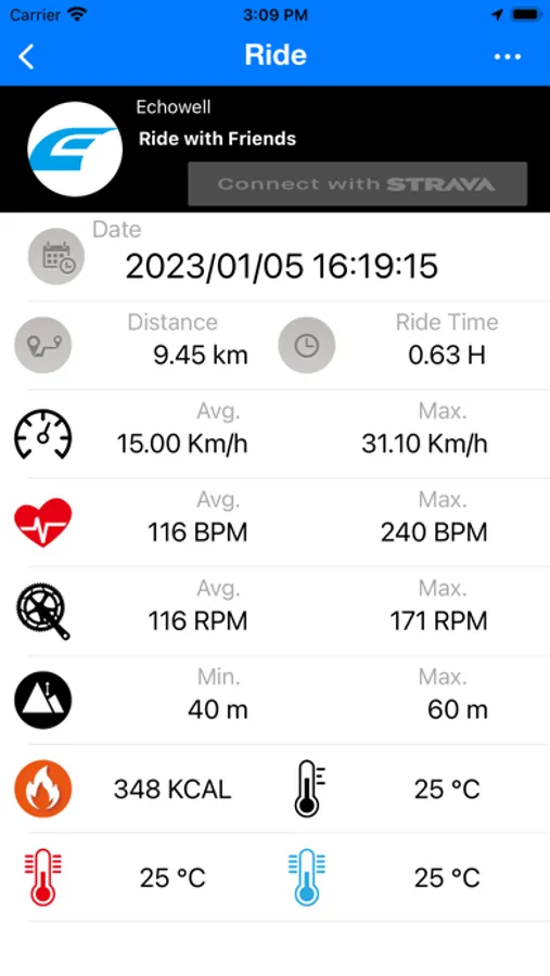 If APP connection with Echowell Bluetooth heart rate monitor, will display riding information on the app.