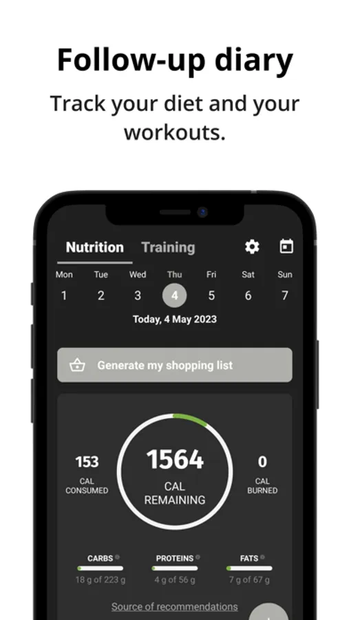 Thanks to the statistics tracking module, analyzing your evolution and progress over the short, medium and long term (evolution of weight, BMI, calories/carbohydrates/lipids/macronutrients/proteins