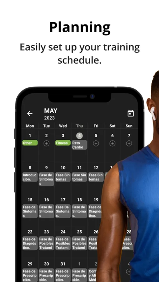 Each exercise is explained with an explanatory video (more than 500 video exercises) of the movement, the number of repetitions to be done, the load to be used and the rest time to be taken.