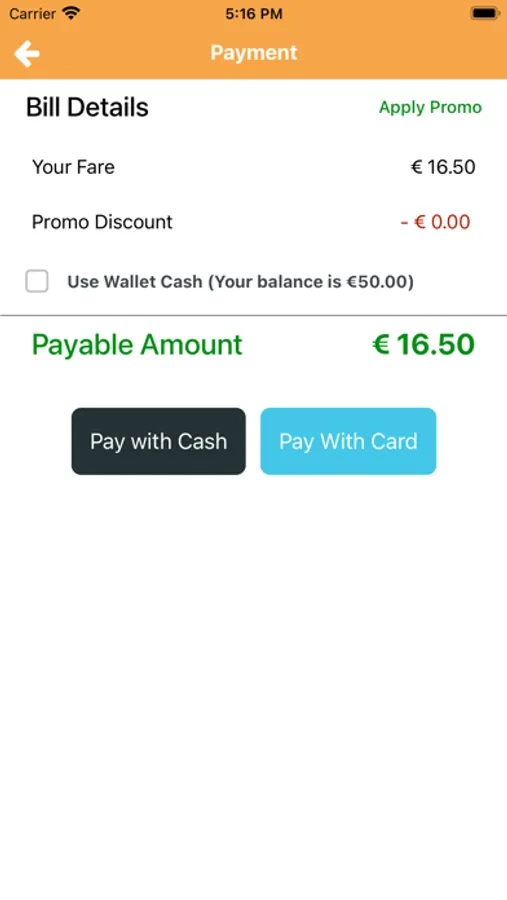 Enjoy the convenience of paying for rides with cash and a credit card.