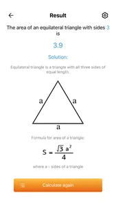 Area of a triangle, equilateral isosceles triangle area formula calculator allows you to find an area of different types of triangles, such as equilateral, isosceles, right or scalene triangle, by different calculation formulas, like Geron's formula, length of triangle sides and angles, incircle or circumcircle radius.