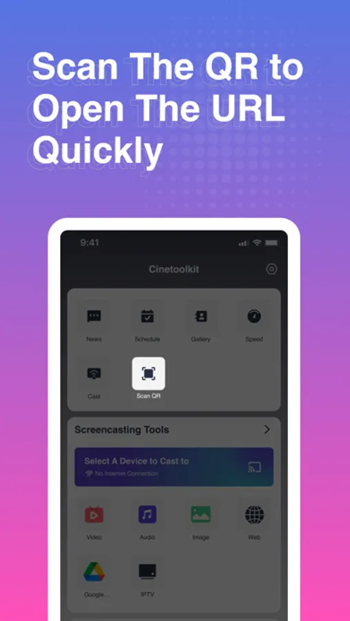 Get all the tools a movie lover could ever want - from top new releases, viewing schedules, your movie memory, testing your internet speed before starting watching, casting anything related to the movie (e.g. local video, or local audio track), you can also open some websites more easily through scanning QR.