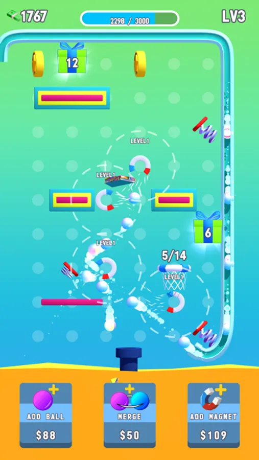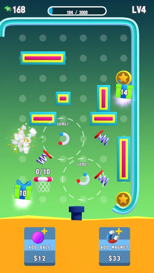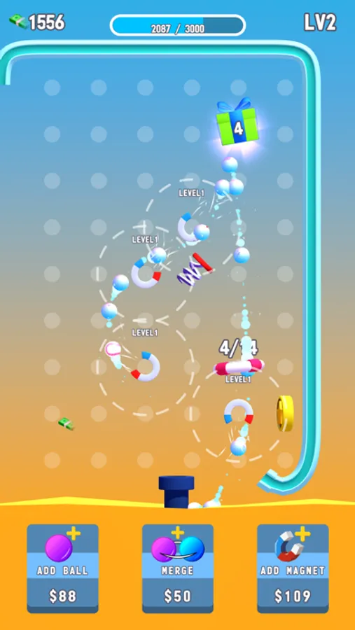 Buy some magnets and create magnetic fields! In this way move the balls to the target or keep them in the loop and earn more money.