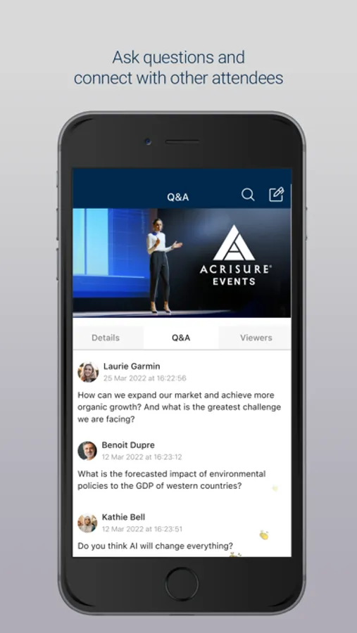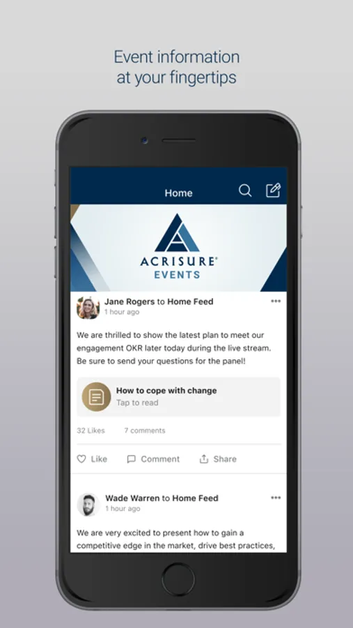 Your one stop for everything at the Acrisure Events! Upon logging in, you'll have access to information on agendas, speakers, breakouts, tech demos, transportation and more. Search for and connect with other attendees during and after the event. Post photos, comment on posts and view on-demand content. Earn points every time you engage with the app - those with the most points will be awarded BIG prizes!
