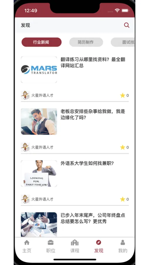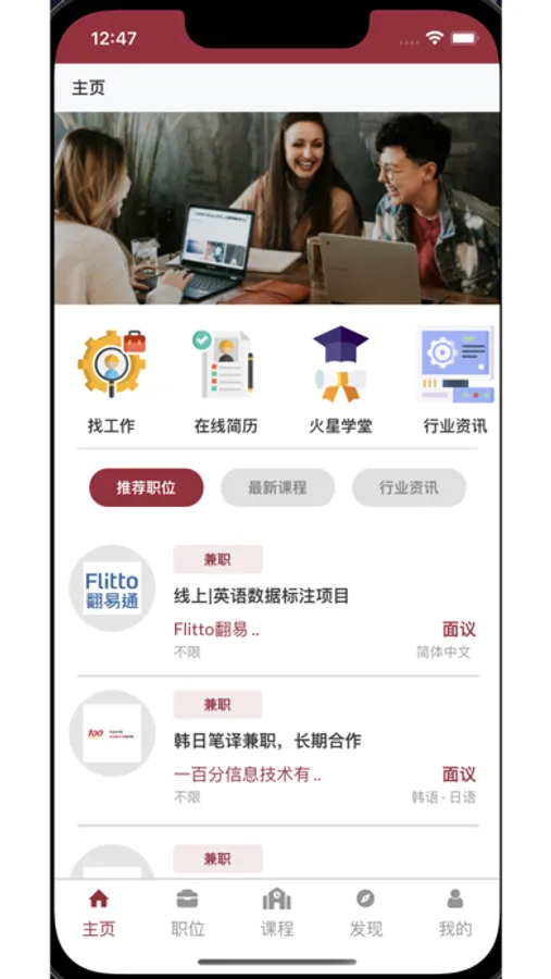 火星App专注外语人才求职以及个人提升,求职者与招聘者精准匹配,随时随地查看新的外语工作机会,学习外语相关课程,并每日更新外语相关的热辣资讯。