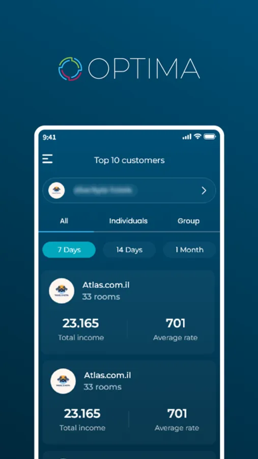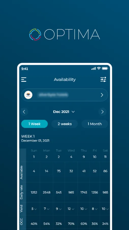 Including percentage of occupancy, average rate, yield level, restrictions. Optima Hotel Manager