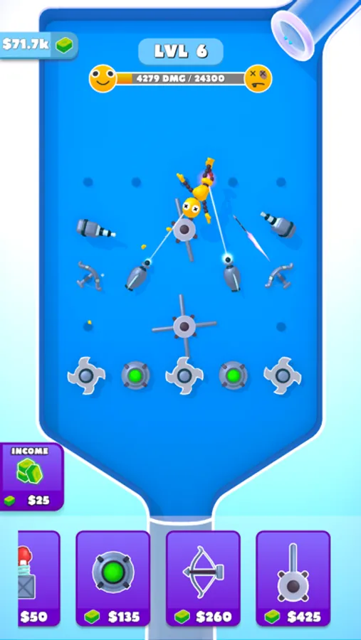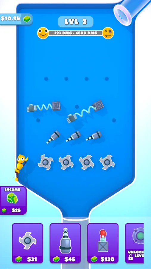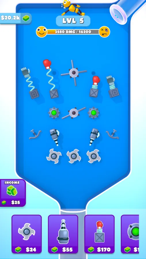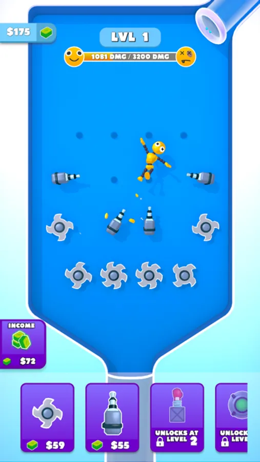 Set up your traps to put harm in the dummy's way. Merge your weapons to unleash their true power! Find the best way to put your traps, and hit the ragdoll dummy where it hurts! There are many unique weapons that you can unlock. Can you unlock all the weapons?