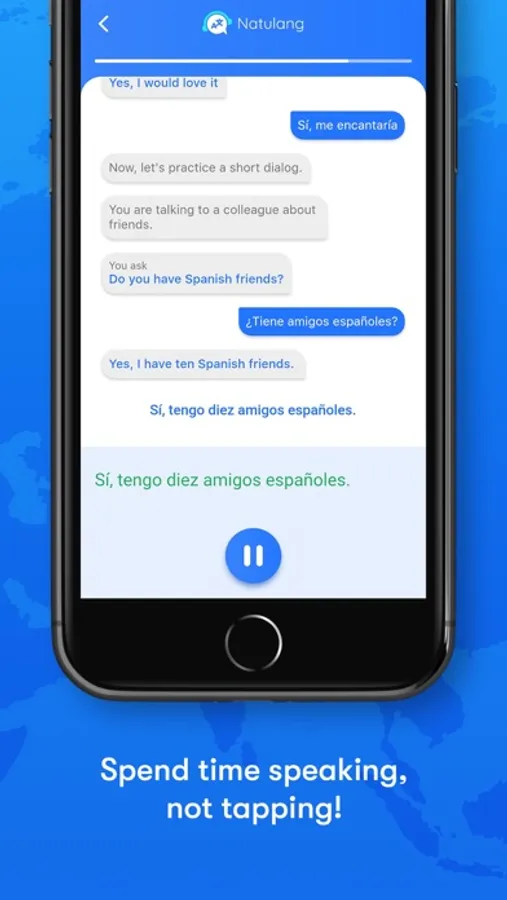 Is your goal to ACTUALLY SPEAK Spanish? Tired of gamified tapping apps that just waste your time? Try Natulang! While other language-learning apps may focus on tapping and typing, Natulang is all about speaking. Our cutting-edge voice generation and recognition capabilities allow you to learn real-life dialogues by speaking them out loud, giving you the confidence you need to speak with native speakers. With Natulang, you'll spend most of your time speaking, which is the key to mastering any language.