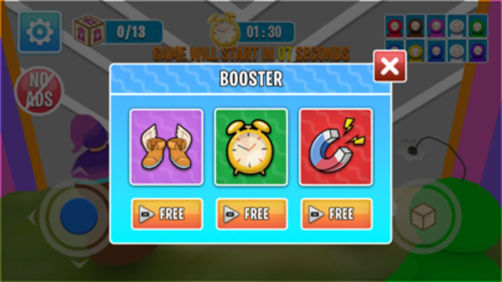Find all the boxes and bring them to the center of the map before the time's up.