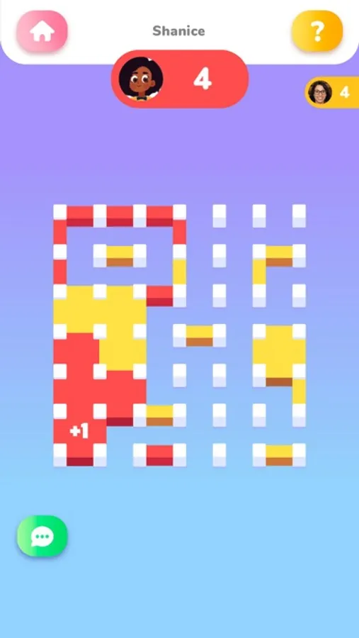 In Dots and Boxes place lines of your color between two points to form a box. The winner is the one who closes the most boxes.