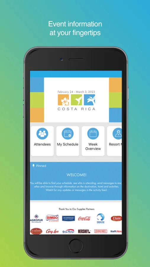 Welcome to the 2023 Retailer Trip app. You will be able to browse through important information for the program, view your schedule, see who is attending and sponsoring, post photos and send messages to one another. We are looking forward to making this year’s program the most powerful yet.
