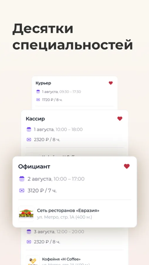 Сервис для поиска временной работы в сфере HoReCa и Retail, где можно найти работу на неполный день для студентов и просто свободных людей, ценящих свое время и привыкших его контролировать.