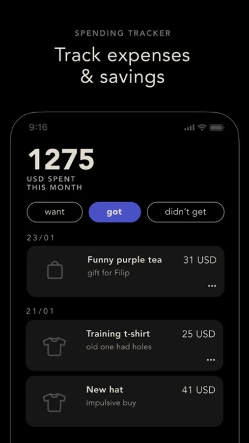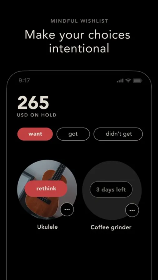 This feature allows you to catalog the items you once desired but ultimately decided not to get. By documenting your reasoning, you can appreciate your mindful choices and free up mental space, while tracking how much money you have saved by limiting your spending.