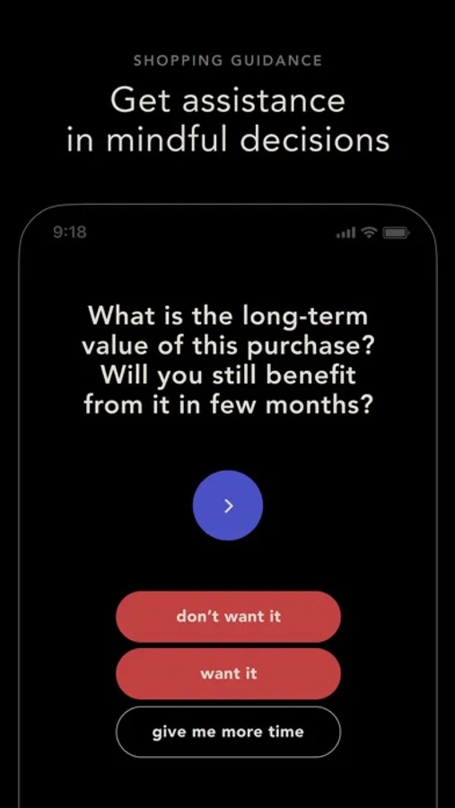 When you're on the verge of making a purchase, use the "Should I?" Test found in the Learn section. This tool guides you through a series of questions and prompts, helping you evaluate your true need for a particular product and encouraging thoughtful reflection before a purchase.