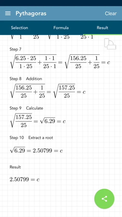 Several math topics are combined into one app. Choose a topic and enter your values to get the results with all solution steps.