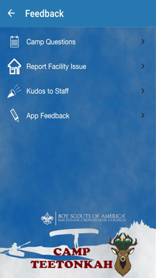 Support for this app is limited; camp staff will not be able to handle any technical issues you may encounter. If you have feedback on the App, please submit those via the Feedback App Feedback form.
