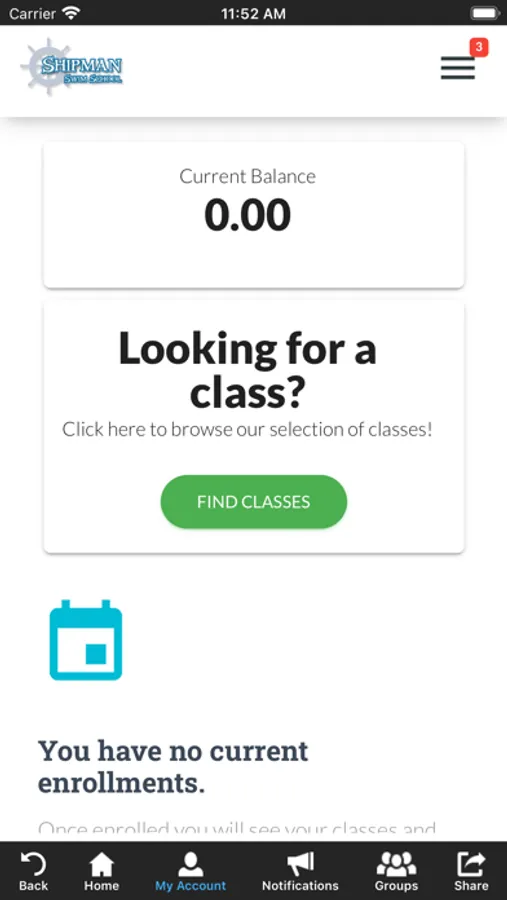 The Shipman Swim School app allows you to manage your account with ease and register for swim classes. You'll also receive important notifications about class changes, closings, registration openings, special announcements, and upcoming events.