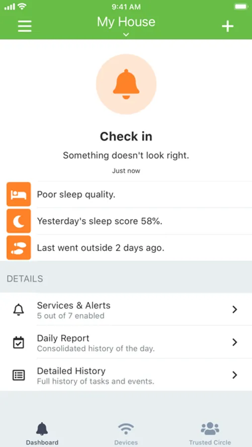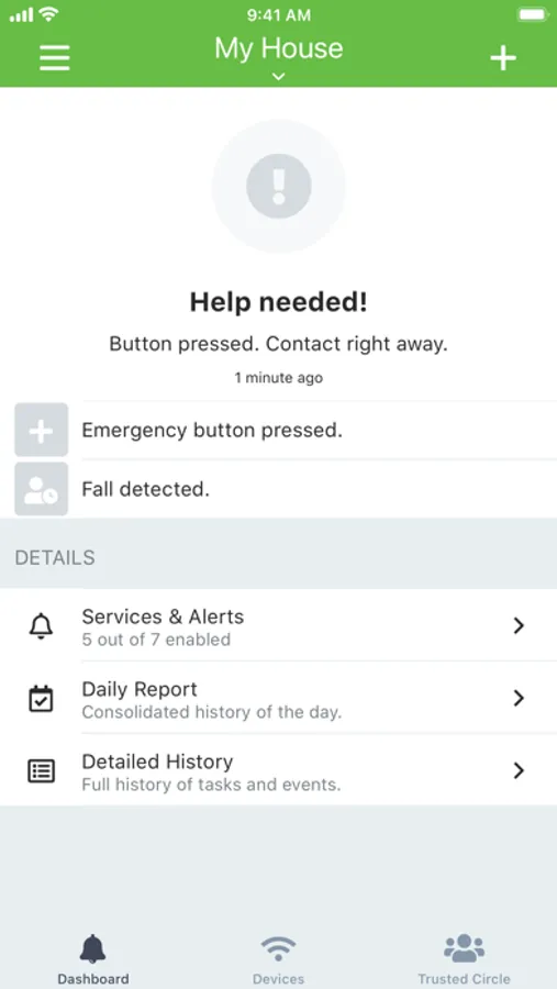 Easily keep track of loved ones who may live alone, near or far away, for enhanced peace of mind. Seniors can live at home longer delaying a costly move to an independent or assisted facility. If help is needed, the Trusted Circle and emergency services are notified.