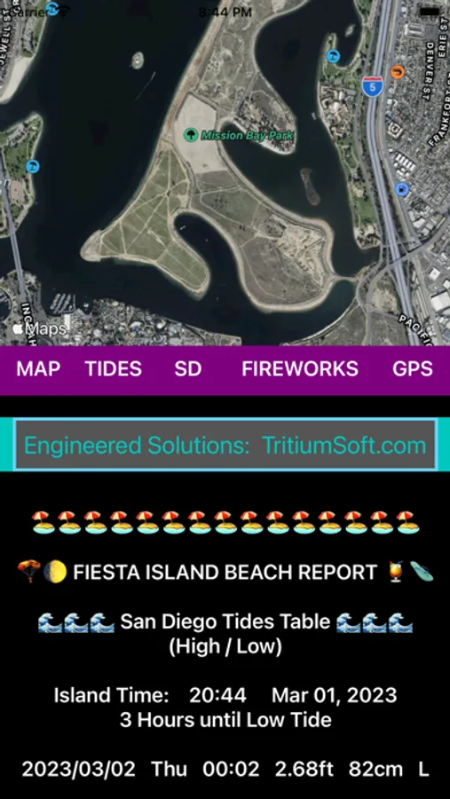 TidesTable_SD provides a Zoomable Map of Mission Bay Park & Links to City Information