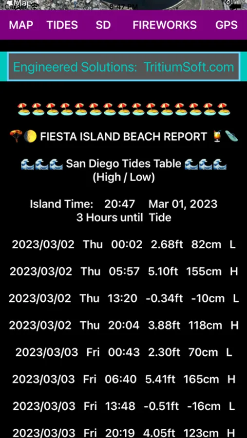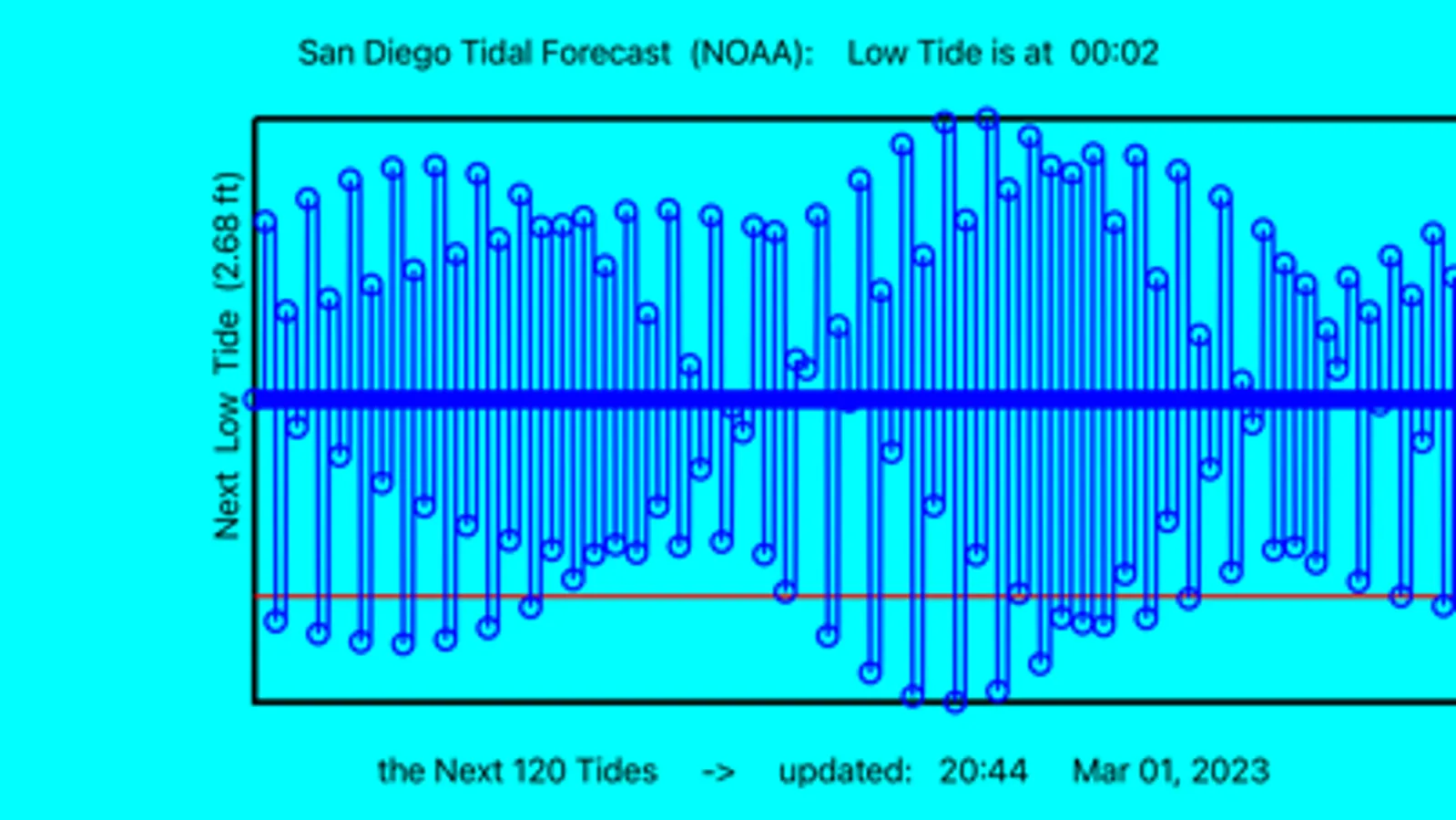 TidesTable_SD displays the Current Time Until Next High/Low Tide....the Relative Size of the Tide (centimeters & Feet)