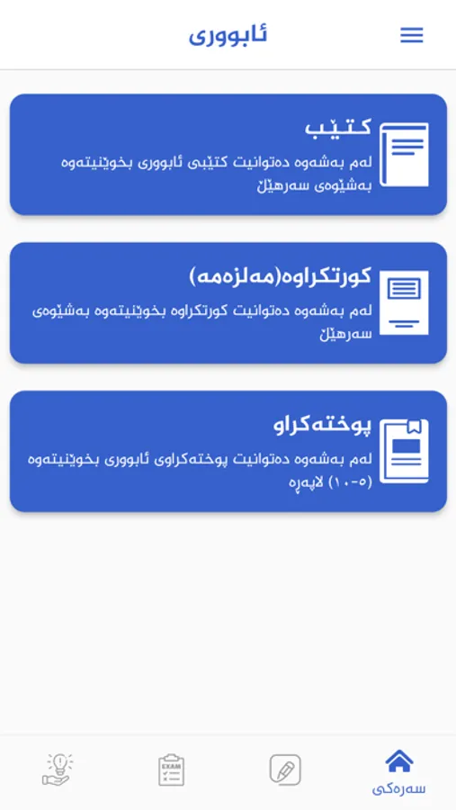 بەشی سەرەکی : لەم بەشەدا ئەو کتێب و کورتکراوەنە دانراون کە پەیوەست بە وانەی ئابوورییەوە