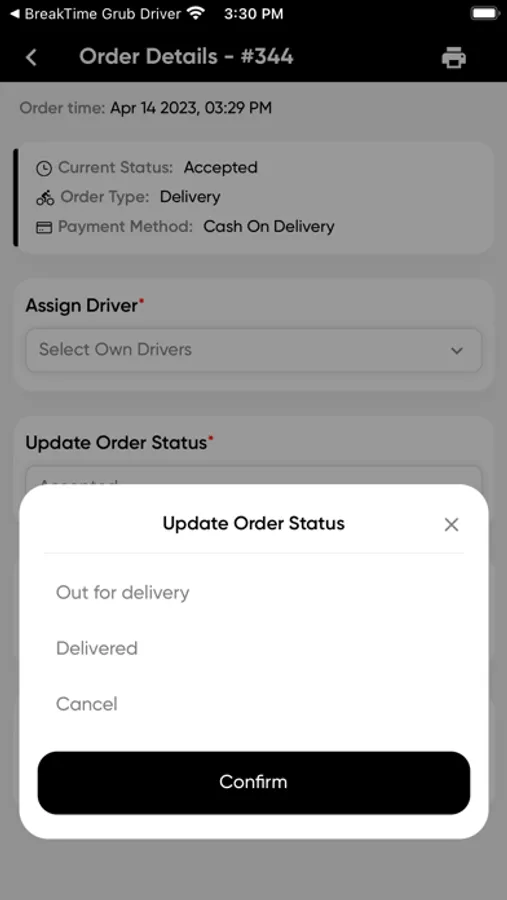 BreakTime Grup is an app for merchants to receive orders. The merchants can also accept/decline orders.