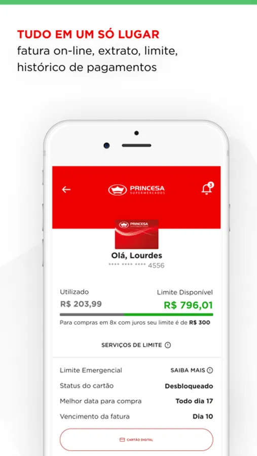 Com o aplicativo do Cartão Princesa Supermercados , você pode realizar compras, consultar seus limites, ver seu histórico de transações, controlar seus gastos, lembrar onde eles aconteceram, e ficar por dentro de promoções da Rede. Tudo isso de maneira prática e rápida., você pode realizar compras, consultar seus limites, ver seu histórico de transações, controlar seus gastos, lembrar onde eles aconteceram, e ficar por dentro de promoções. Tudo isso de maneira prática e rápida.