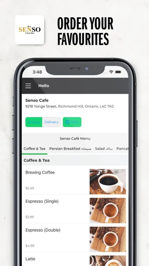 Download Senso Cafe & Bites Ordering App and plan your next meal by browsing through the Senso Cafe & Bites menu. Quickly order breakfast, healthy salads, hot and cold drinks, desserts, milkshakes, fresh juice, and much more using our app.