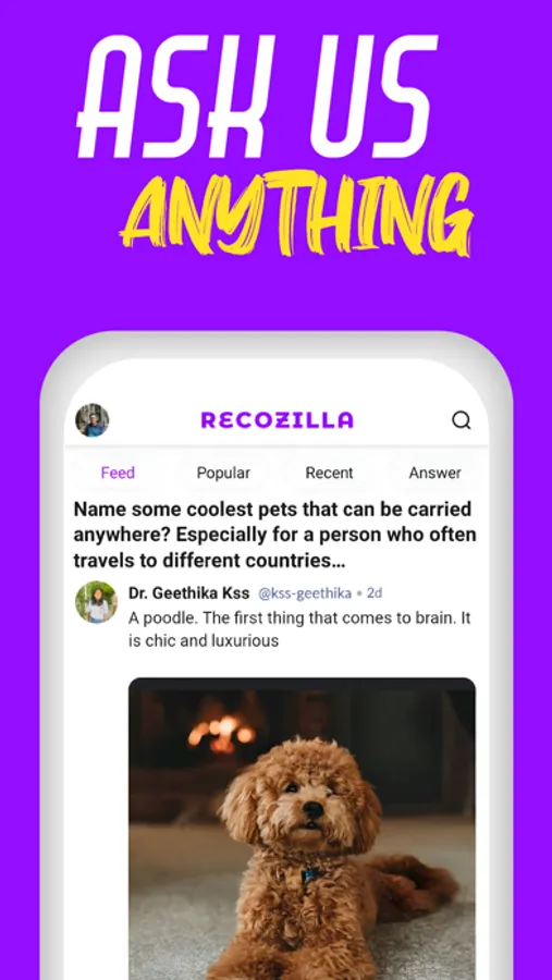 Recozilla is your go-to app for all things Q&A. You can ask questions, answer questions, vote for the best answers, and discover content about lots of topics. Join us today and be part of the Recozilla community!