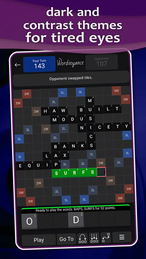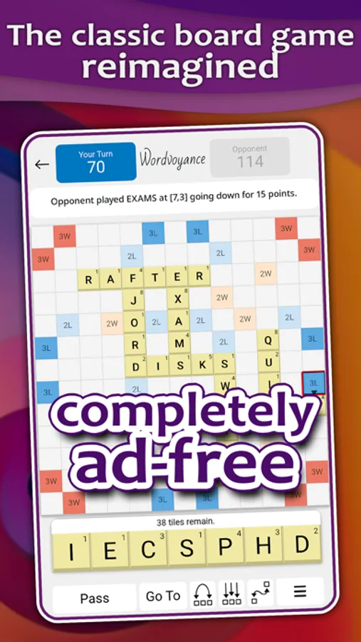 NEW: Play the newly-added Wordvoyance single player mode to learn the game, sharpen your skills, and test your might against the CPU at a faster pace than playing against human opponents!