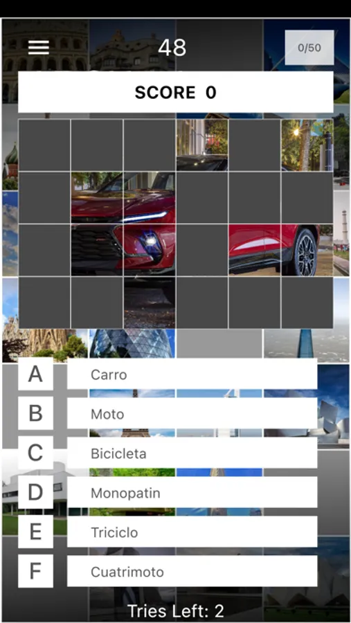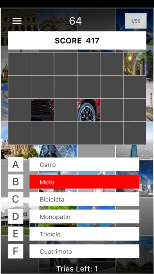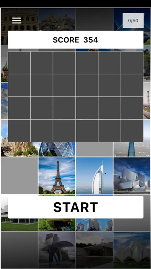 The game starts with an image of the building covered by black squares. As time passes, the black squares will start to disappear, revealing more parts of the image. The objective is to guess the name of the building before the time runs out and the image is fully revealed.