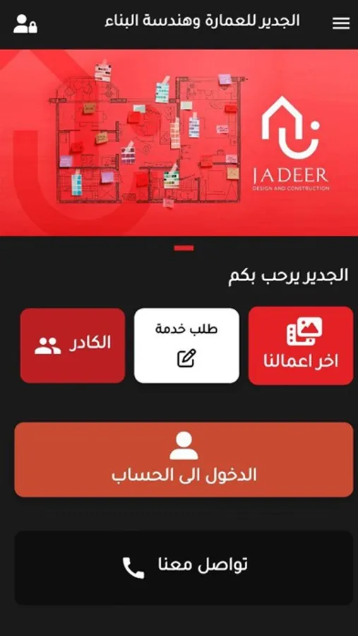 تطبيق الجدير هو تطبيق مخصص لاعمال العمارة وهندسة البناء يمكنك من الاطلاع على اخر الاعمال وطلب عمل مماثل والاطلاع على حسابتك ومصاريف