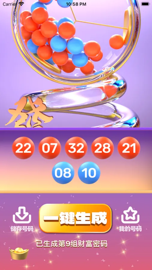基于最新算法,软件功能超简洁,随机一组只属于自己的财富密码,现场机选人人能,财富密码自己有!
