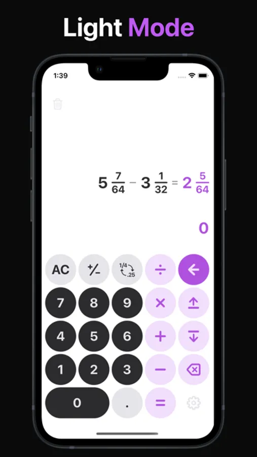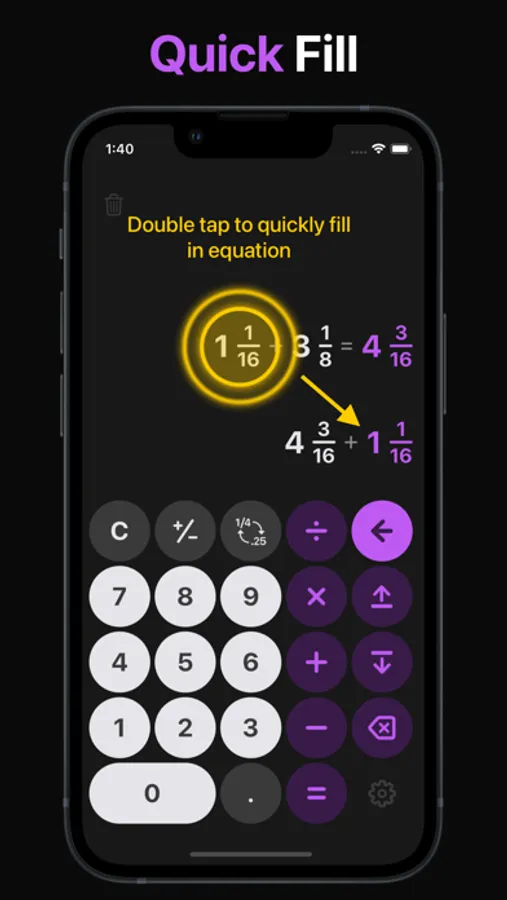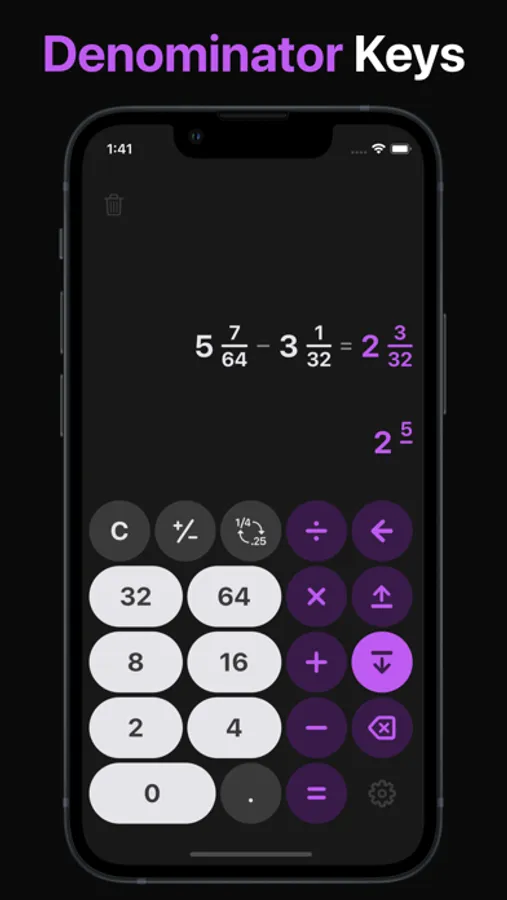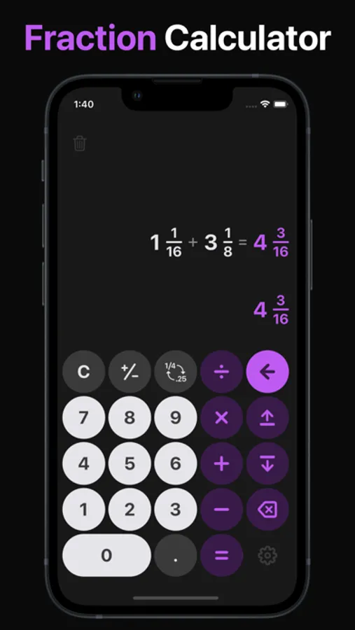 One16 is designed to handle fractions and decimals equally. Mix types between calculations without issue. The calculator will convert everything into easily work with fractions for the the real world.
