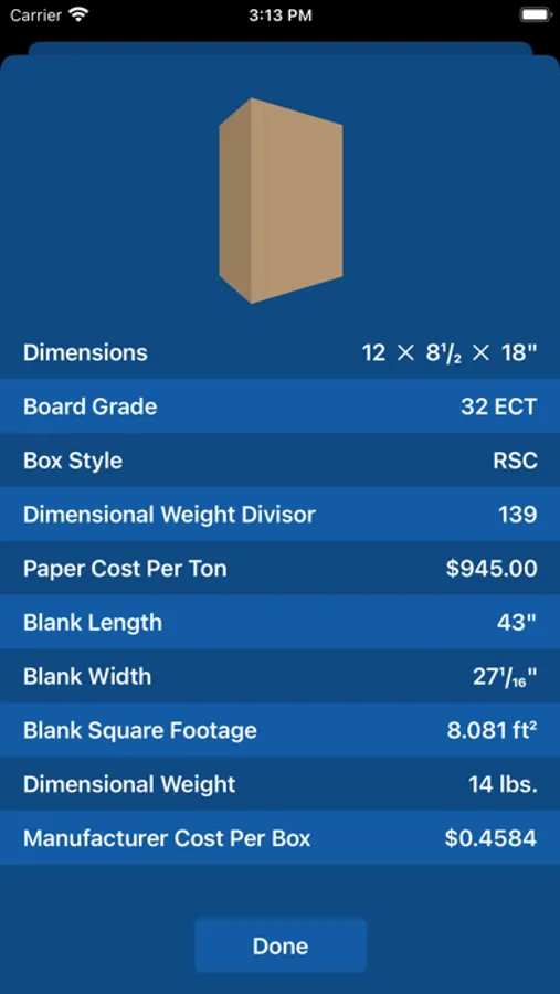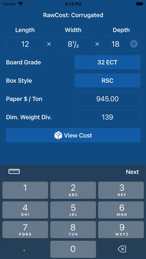 Simply enter the internal dimensions, choose a board grade, select a box style, and enter your paper cost per ton.
