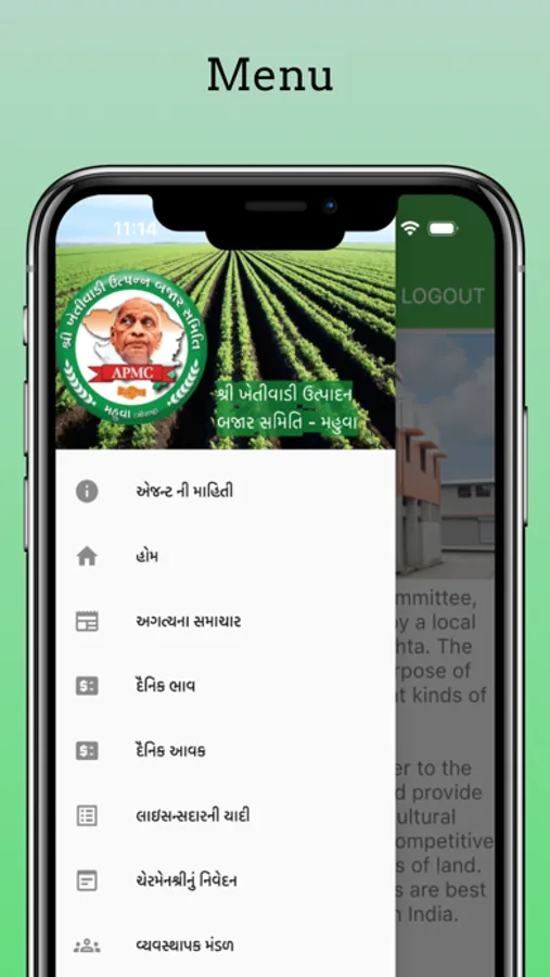 General Users can access various information about the APMC Mahuva like Important News, Daily Price, Daily Inward, Commission Agent List, Chairman's Statement, Management Board, Useful Website & contact.
