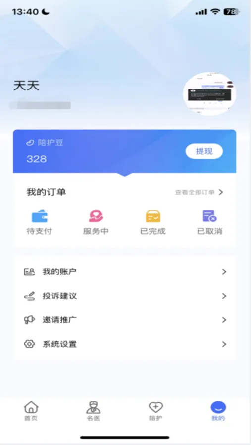 用户可以在此页面选择自己需要的陪诊,陪护单项服务或者套餐,可根据平台推荐的陪诊师,护工预约评分较高的人员为您服务,并预约时间,地点,天数,提供的服务有上门接送,代挂号,代陪护,代复诊,代问诊,代取药,代取报告等。
