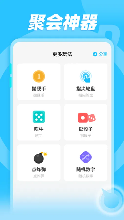 3.除了转转盘的玩法,本软件还加了6种聚会玩法: